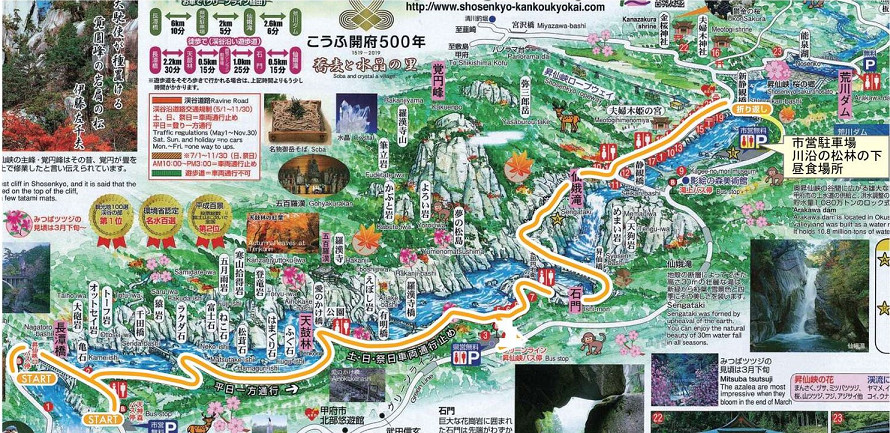 運転手さんに「さっき駅で聞いたんですが 昇仙峡の遊歩道の途中が崩落で通行止めになっているんですね」
