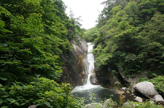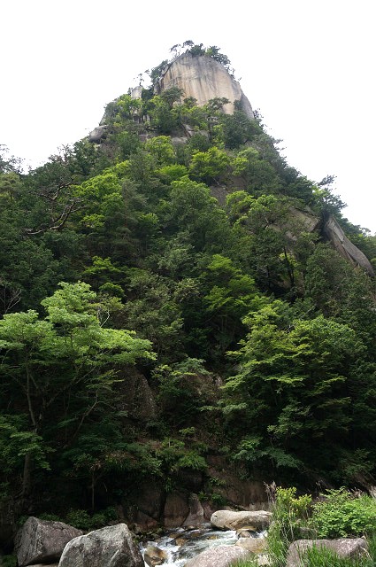 バス停をおりて先に仙娥滝から覚円峰を臨むことにした