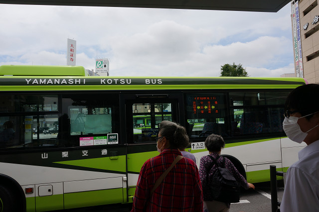 荷物をロッカーに入れて昇仙峡行きのバスを待つ