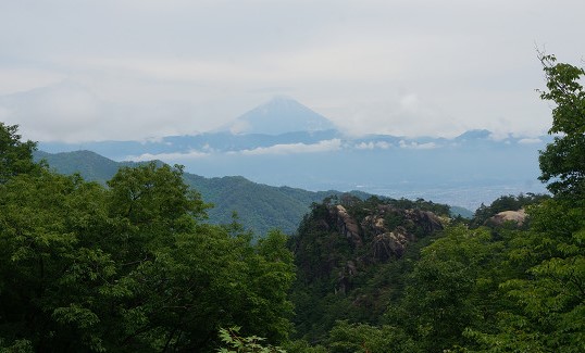 坂がきつい 暑い でも左に何時も霞か雲の中から富士山が見えている