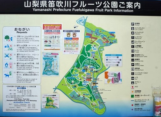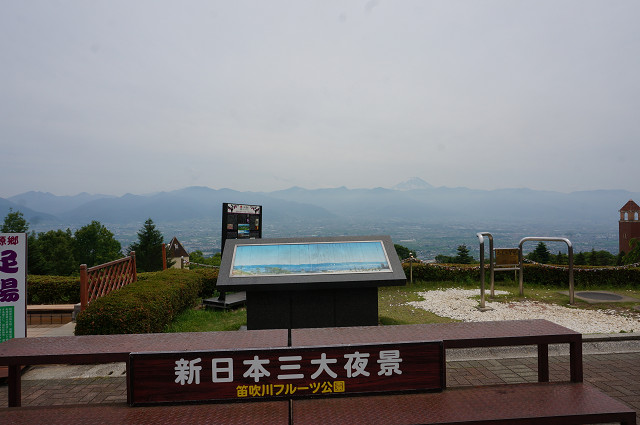 甲府盆地の山手 葡萄や桃畑の中ほどに「フルーツ公園」「フルーツセンター」がある