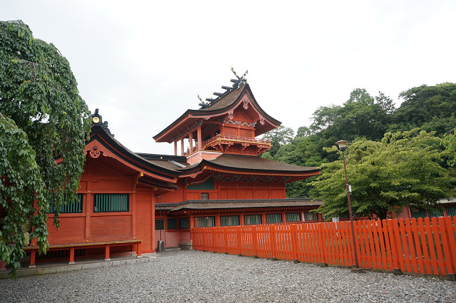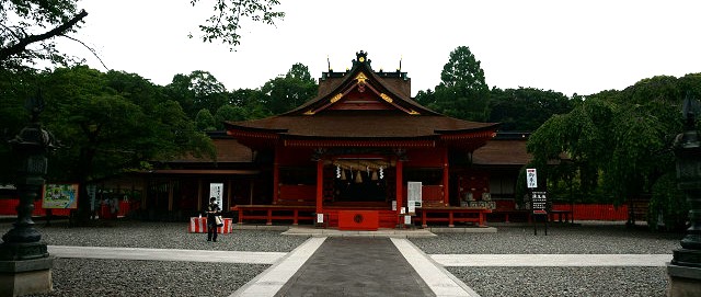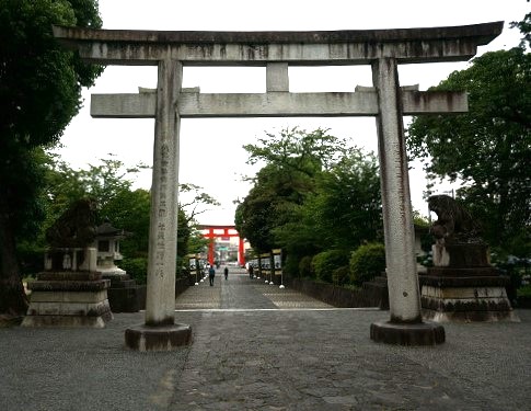 神社の遥拝所の後ろに富士山があると思っていたら山は本殿より30度位右に見える