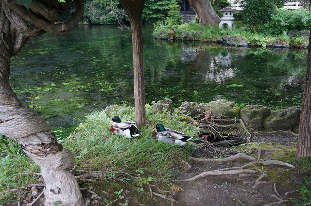 本殿の右手に富士山の伏流水が湧き出す「湧玉池」がある