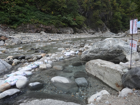 部屋に案内されると やっぱり川のざあざあの音 早速温泉へ