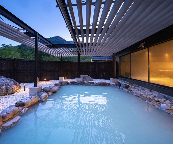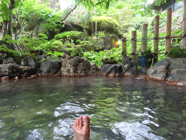 露天風呂は10人ほどが入れる大きさで丁度団体客が入っていたので芋洗い状態