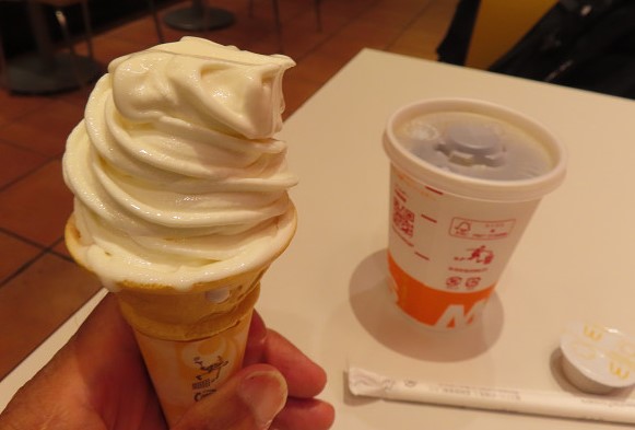 駅のマグドでアイスコーヒーSとソフトクリームで合計260円