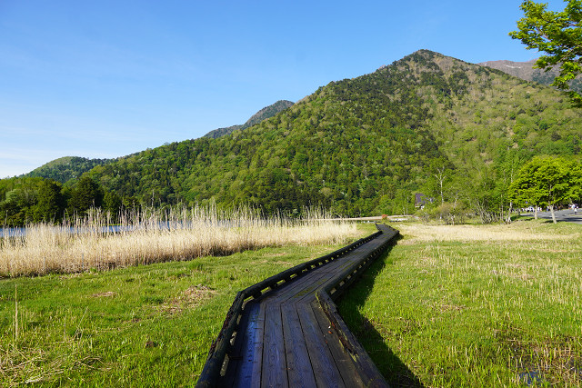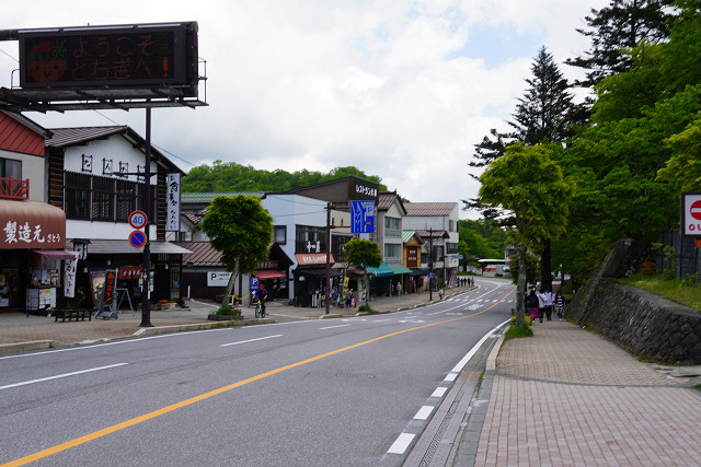 船着き場から10分ほど歩くと中禅寺湖温泉街