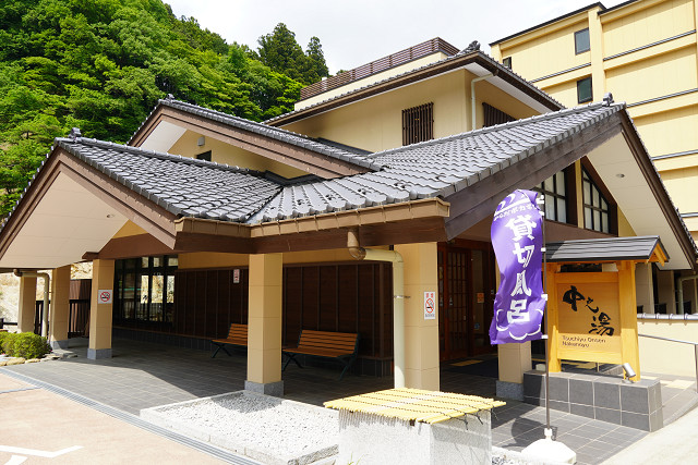 ホテルに入る前に手前で降りて「共同浴場「あったか湯」に行く