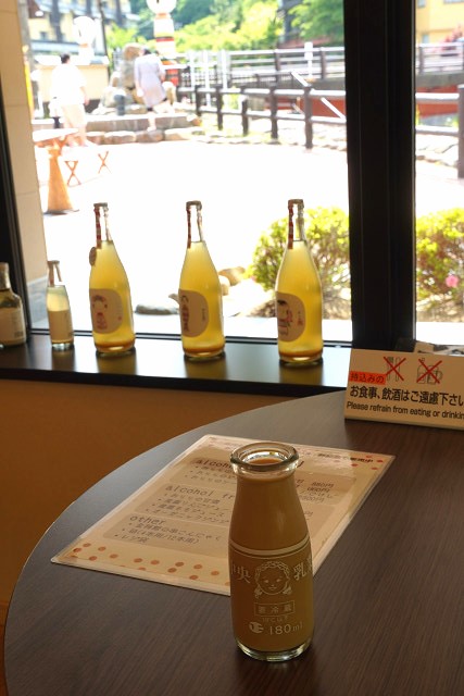 「コーヒー牛乳でもどうですか」と書いたポスターに勧められて飲む