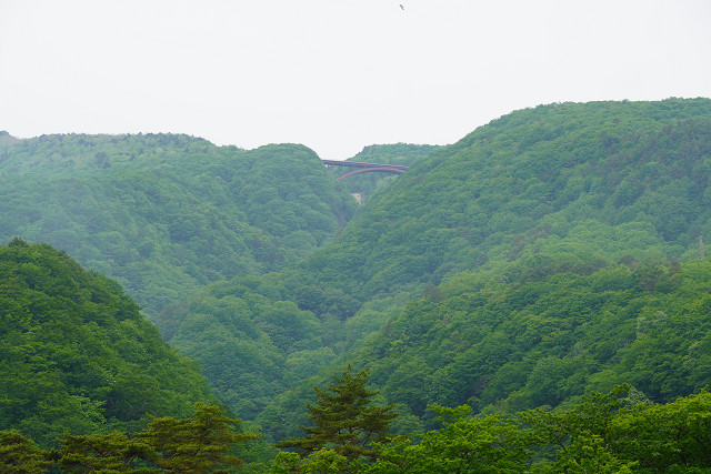 あんな高い所に橋が 磐梯吾妻スカイラインだ