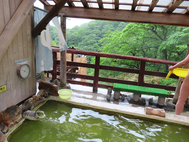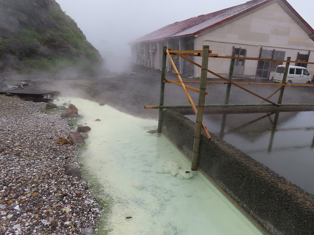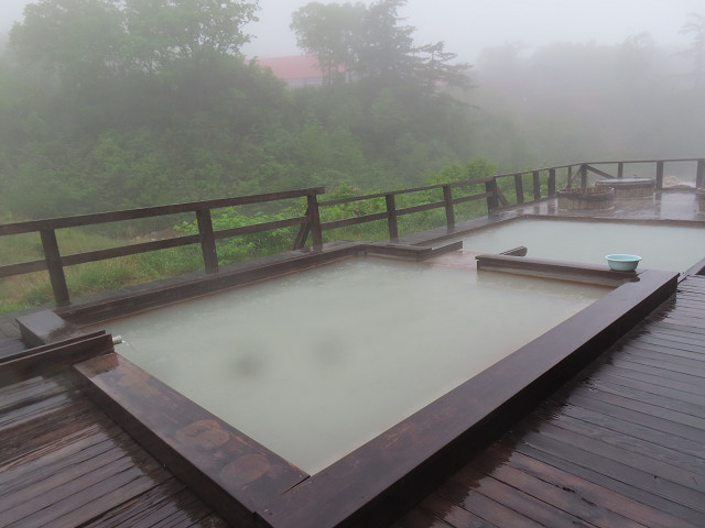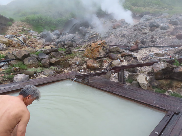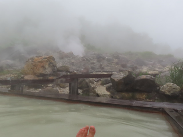 硫黄臭の白濁湯 最後の温泉で天気も良く気分もゆったりとする