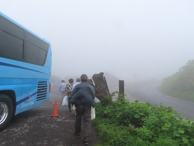 「ふけの湯温泉」を通り過ぎ八幡平の展望台に来たが全く霧の中