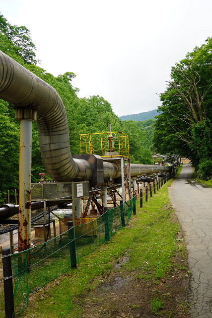 温泉水を使った地熱発電所の横にある