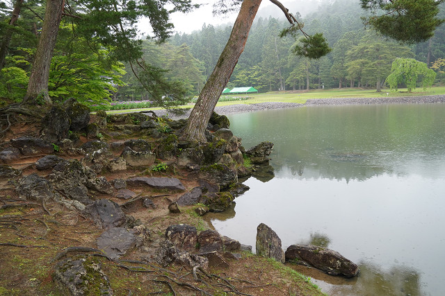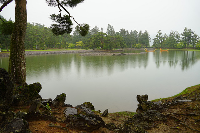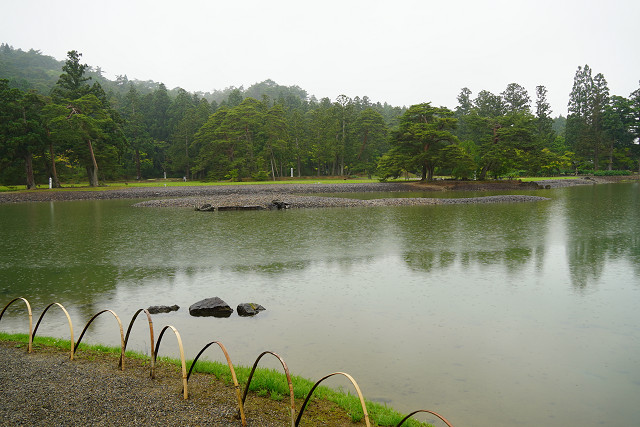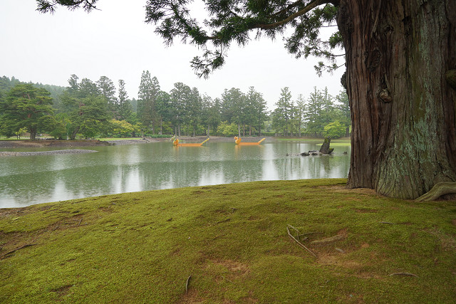 また大泉が池の中心とする浄土様式は 日本最古の作庭書「作庭記」の思想や技法を伝えている池庭で 背景の
