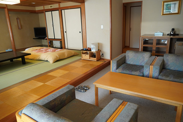 やはり水上温泉は少し高めだ(椅子の背もたれは模様ではない剥げているだけ)