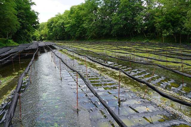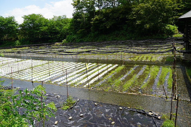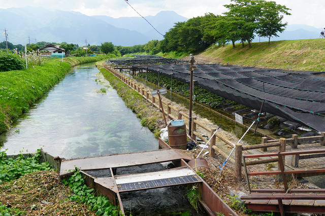 いたる所にわさび栽培畑がある