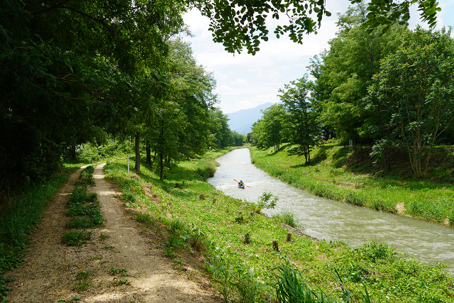 元来た川筋の道を引き返し穂高川沿いの道に行く