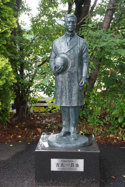 その時は余り気にならなかったが後に行く信濃大町駅の前に同じ歌碑とここでは吉丸の銅像迄ある