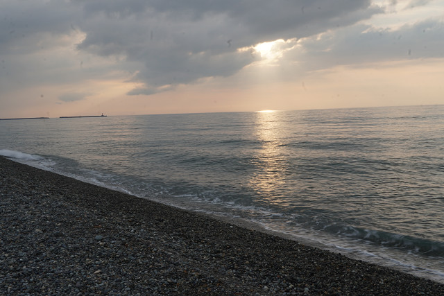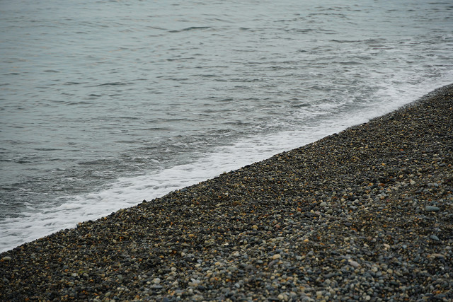 雨は無いが日本海の海岸は鉛色だった
