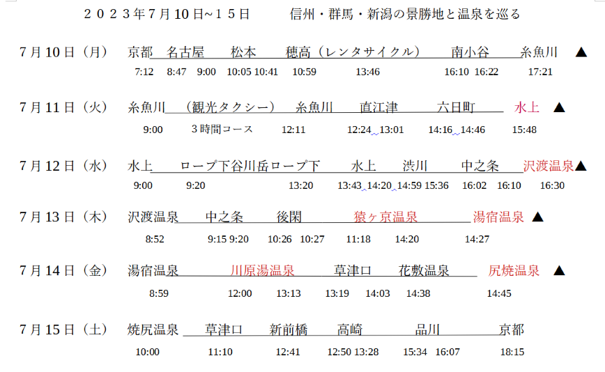 本来は7月9日に出発して御岳山ロープウエイ下の木曽温泉に1泊予約していたが