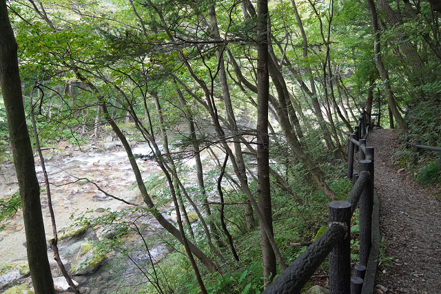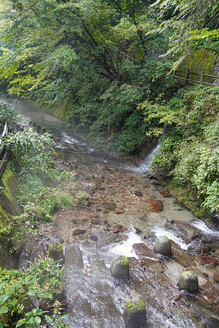 素晴らしい渓流の景観に感動して バス道に上がり「幸の湯」に向かう