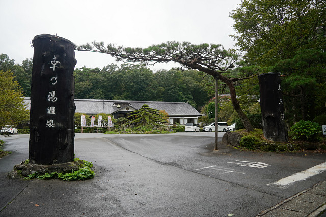 「幸の湯」駅まで坂道を15分ほど歩くと看板が