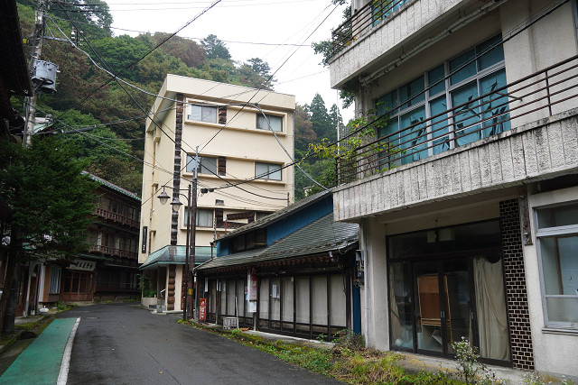 この温泉街も廃墟と化した宿が多い