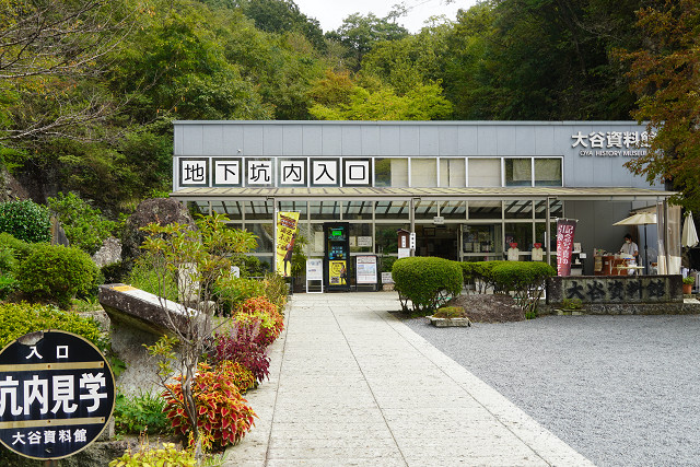 ここからあるいて大谷寺を経由して10分たらずで資料館に着く