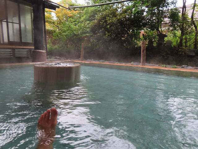 取り敢えず6時の夕食まで登山?で疲れた体を「滝の湯」で癒す
