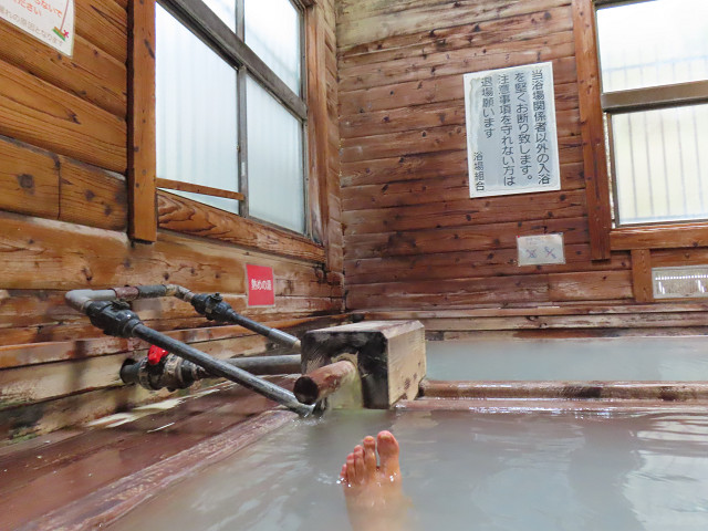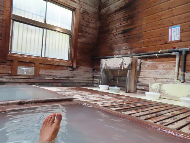 「ここは源泉かけ流しで肌にいいんだよ 本当はもう少し先の板室温泉の方が足腰にはいいらしいが