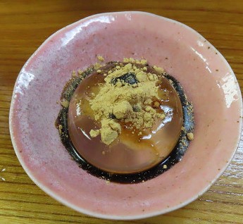デザートは当館名物「松葉水晶」300円を出してくれた 湧水のゼリーにきな粉と黒蜜 美味しかった(どこかのTVで報道されたとか)