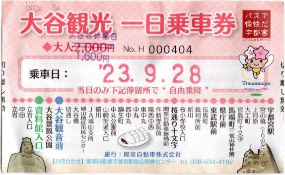 これには大谷資料館入館料800円とバスのフリーと本来なら大谷寺の拝観料も