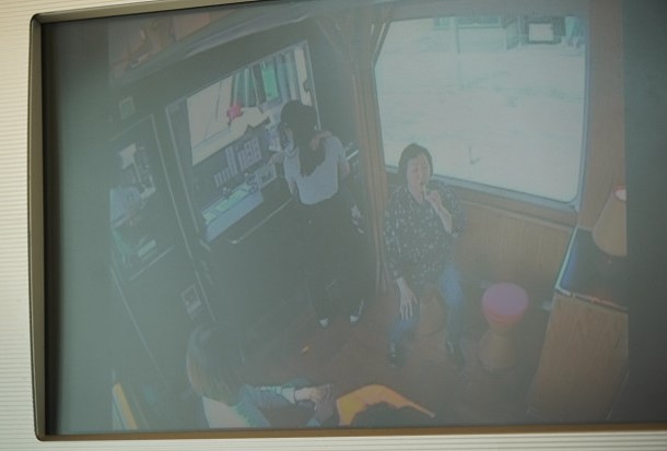 各車両(4両編成)にはモニターとスピーカーで姿と声は聞こえる