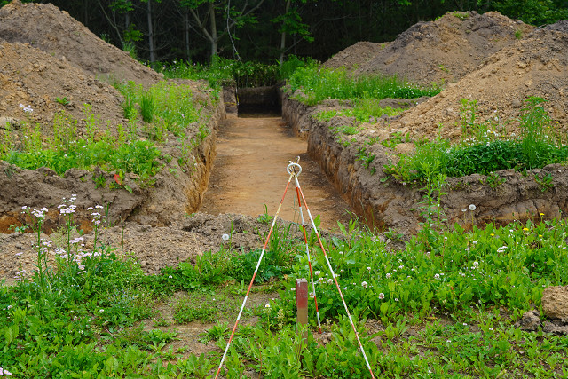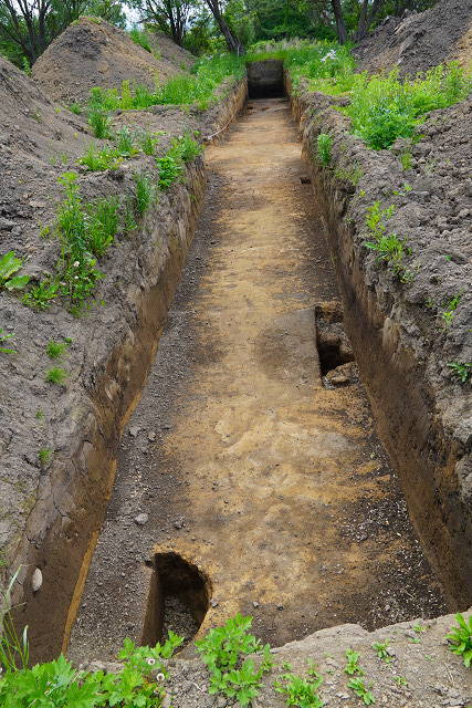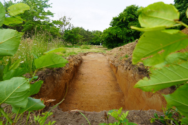 発掘トレンチ 係員は誰もいない 早朝だからかな 日曜日だからかな