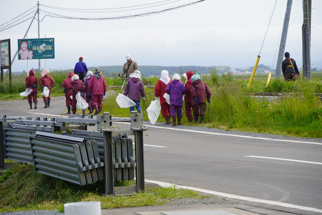 地元のじいじや お姉さんが草刈りとゴミ拾い