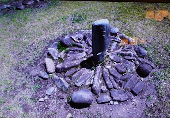 映像を視いているとストーンサークルの中心は立石棒に周りは長短の石が横に並んでいる