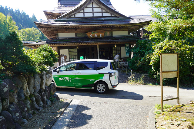 民間バスはここまで バス停には既にデマンドタクシーがドアを開けて待っていた