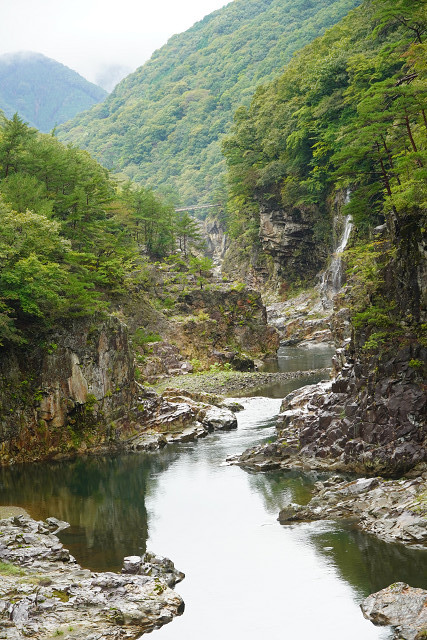 朝から弱い雨が降っていた 今日は鬼怒川温泉との中間点 バスで10分の「龍王峡」に行き