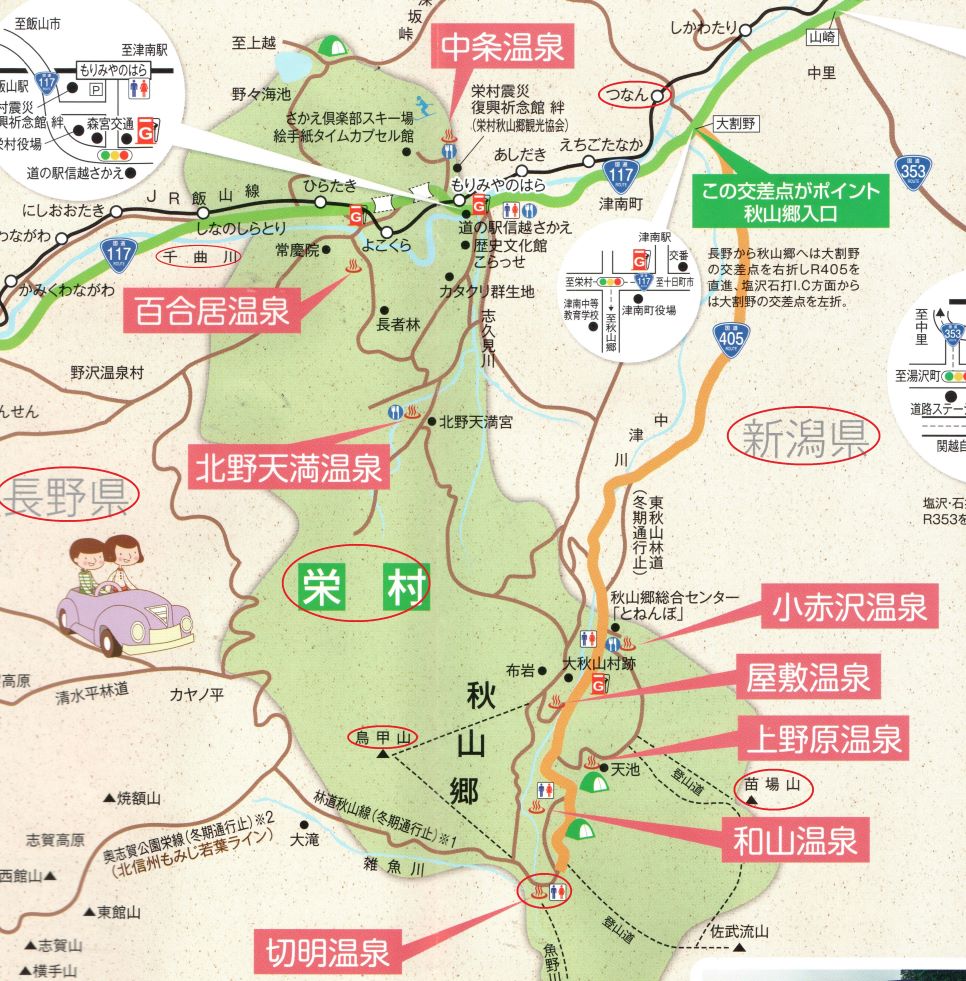➀新潟と長野の県境・秋山郷にある秘湯「切明温泉(きりあけ)」