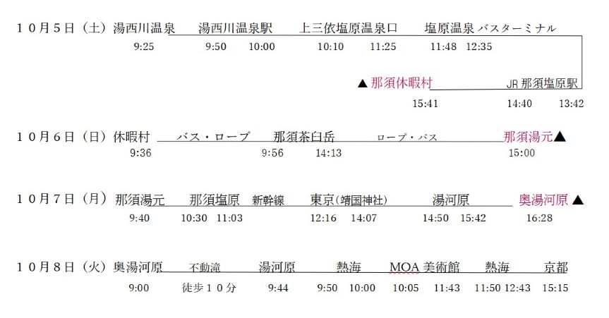 那須休暇村温泉・那須湯元温泉・奥湯河原温泉