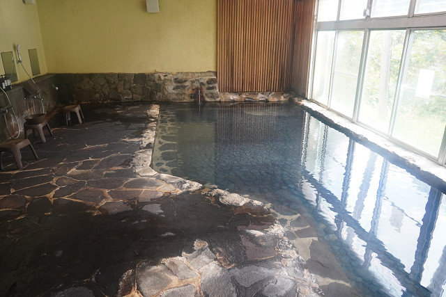 窓には対面から見えないように壁が有り 湯船から河原は見えないが いい湯だった