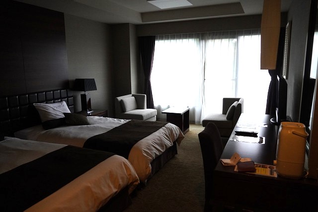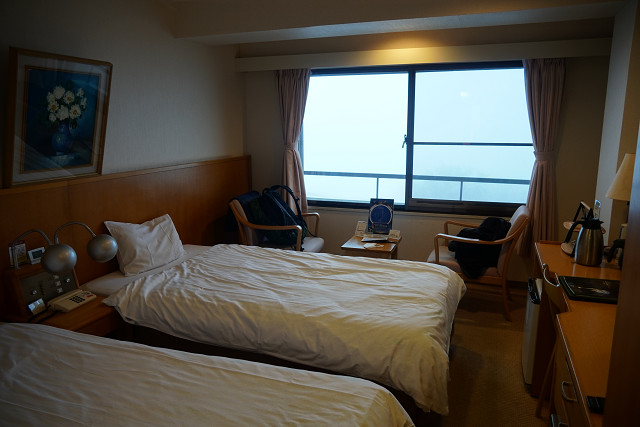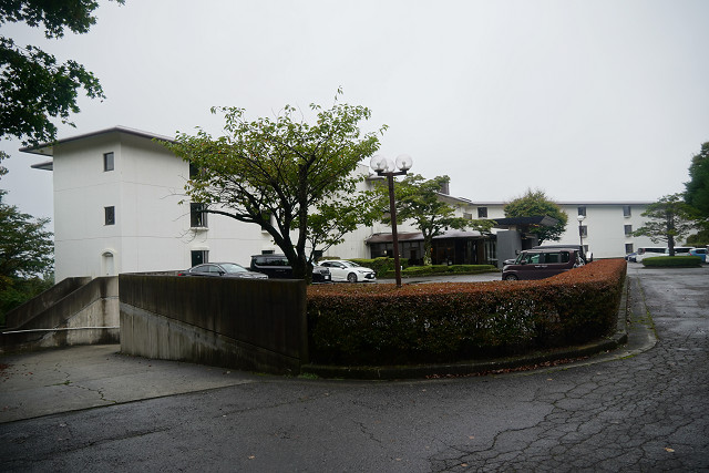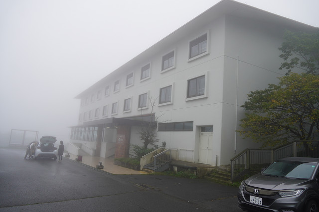 今夜の宿「国民休暇村那須」も霧に包まれている