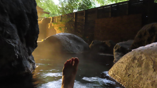 共同風呂「鹿の湯」で体を温め 衣類や靴を全部変えた