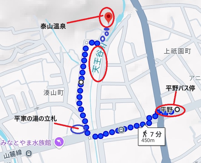 灘温泉から歩いて次の「おとめ塚温泉」に向かう