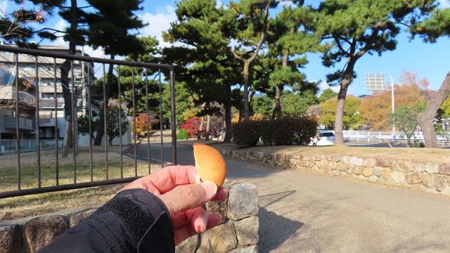石屋川駅の途中の公園でお茶と菓子で一服