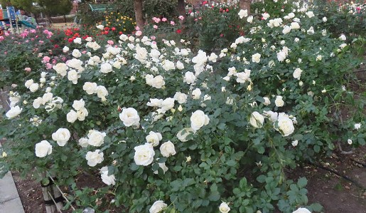近くの公園で時を待った その公園には吃驚するようにバラが満開だった