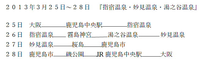 指宿温泉・霧島妙見温泉・霧島湯之谷温泉