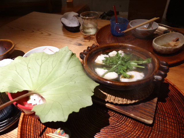 朝食の籠の中は湯豆腐