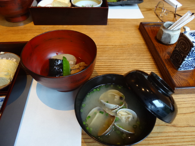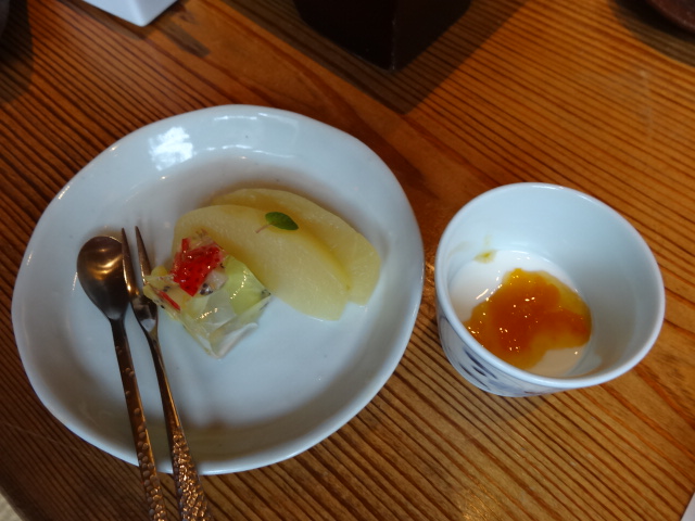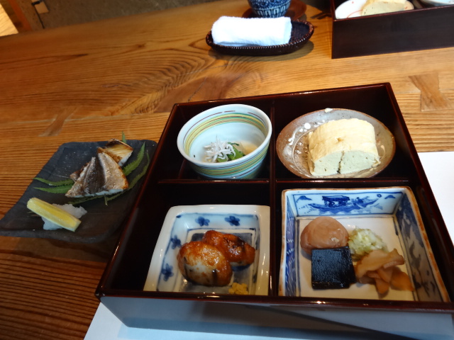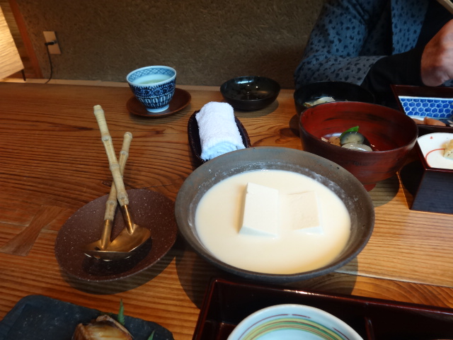 朝食は下の写真(白いのは豆乳で焚いた湯豆腐)