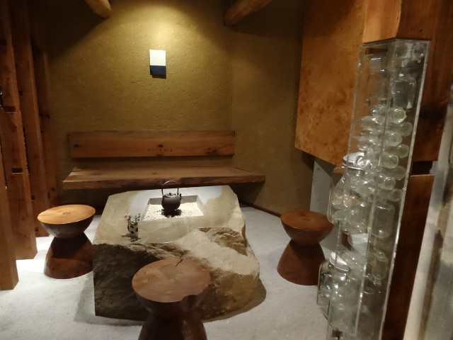 食卓も巨石を切ったものとか 壁も藁入りの土壁
